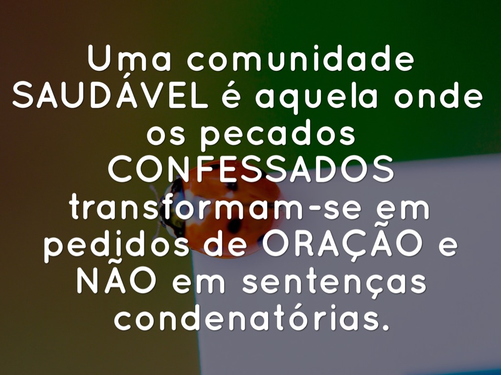 Uma comunidade SAUDÁVEL é aquela onde os pecados CONFESSADOS transformam-se em pedidos de ORAÇÃO e NÃO em sentenças condenatórias.
