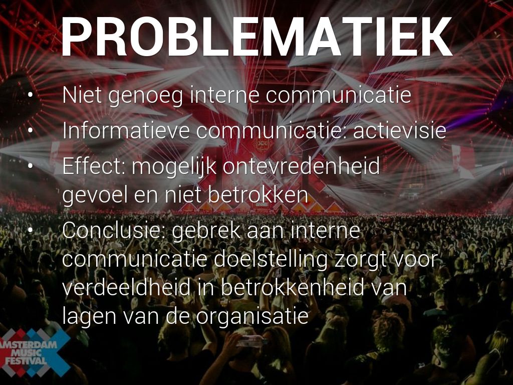 • Conclusie: gebrek aan interne communicatie doelstelling zorgt voor verdeeldheid in betrokkenheid van lagen van de organisatie