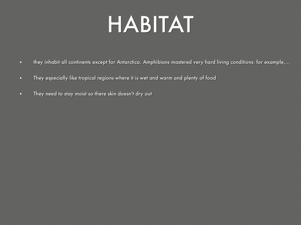 they inhabit all continents except for Antarctica. Amphibians mastered very hard living conditions: for example, salt water reservoirs, dry and very cold areas. They occur in the Himalayas at the altitude of 4500 m, in deserts, underground, within the Arctic and Antarctic Circles. Of course, the majority of amphibian species occur in the tropical region