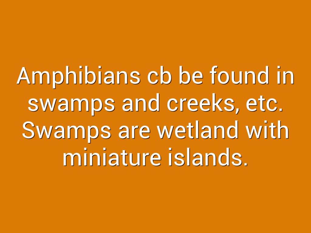 Amphibians cb be found in swamps and creeks, etc. Swamps are wetland with miniature islands.