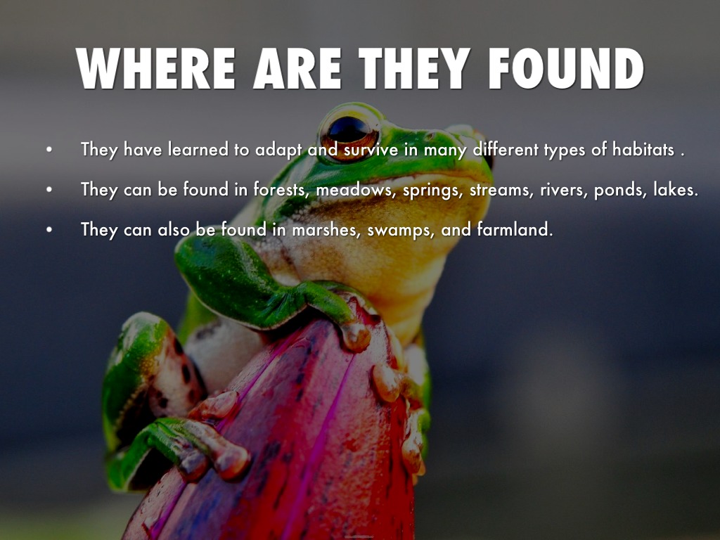 They can be found in forests, meadows, springs, streams, rivers, ponds, lakes.