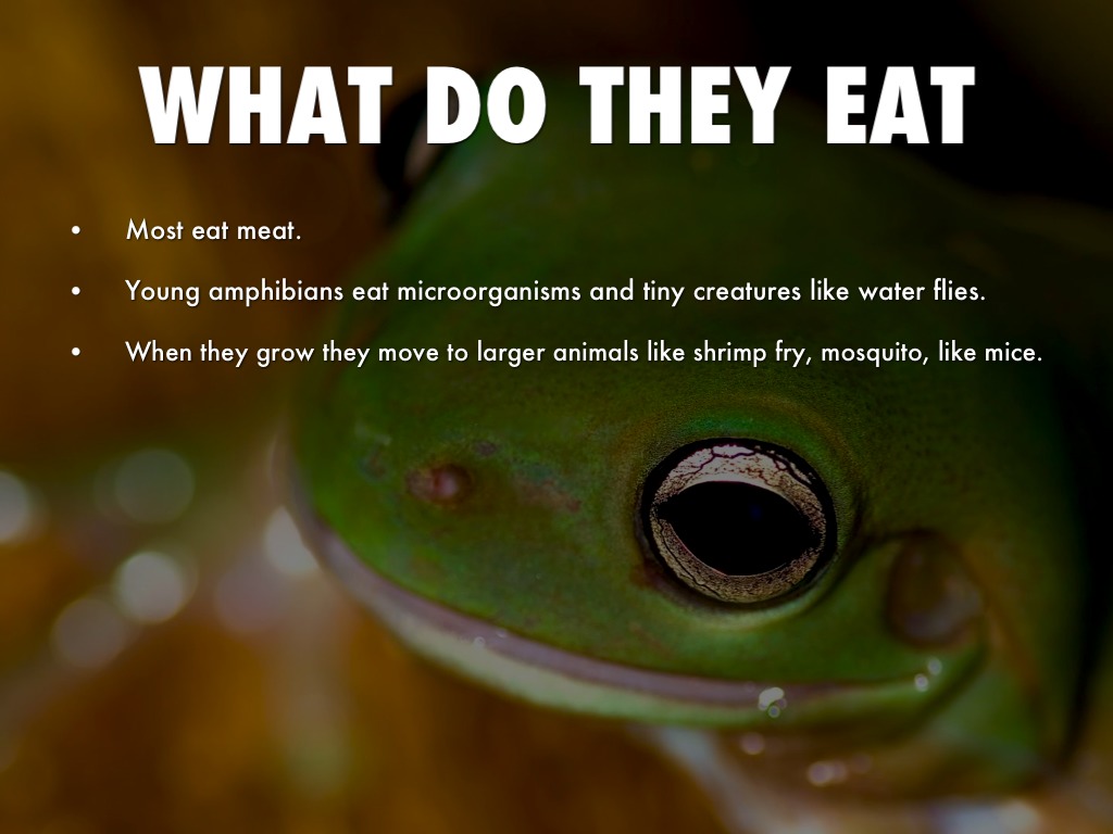 Young amphibians eat microorganisms and tiny creatures like water flies.