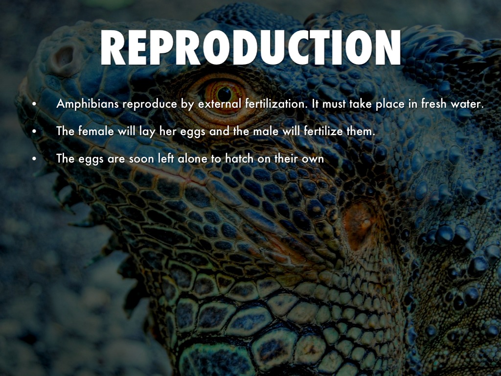 Amphibians reproduce by external fertilization. It must take place in fresh water.