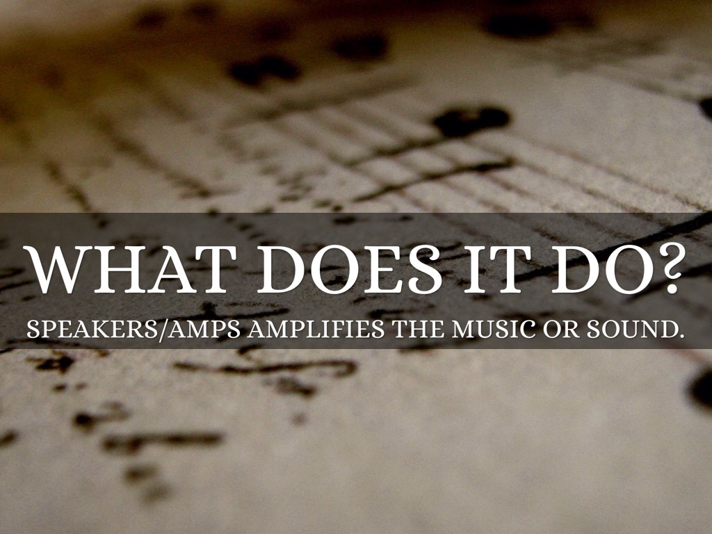 SPEAKERS/AMPS AMPLIFIES THE MUSIC OR SOUND.