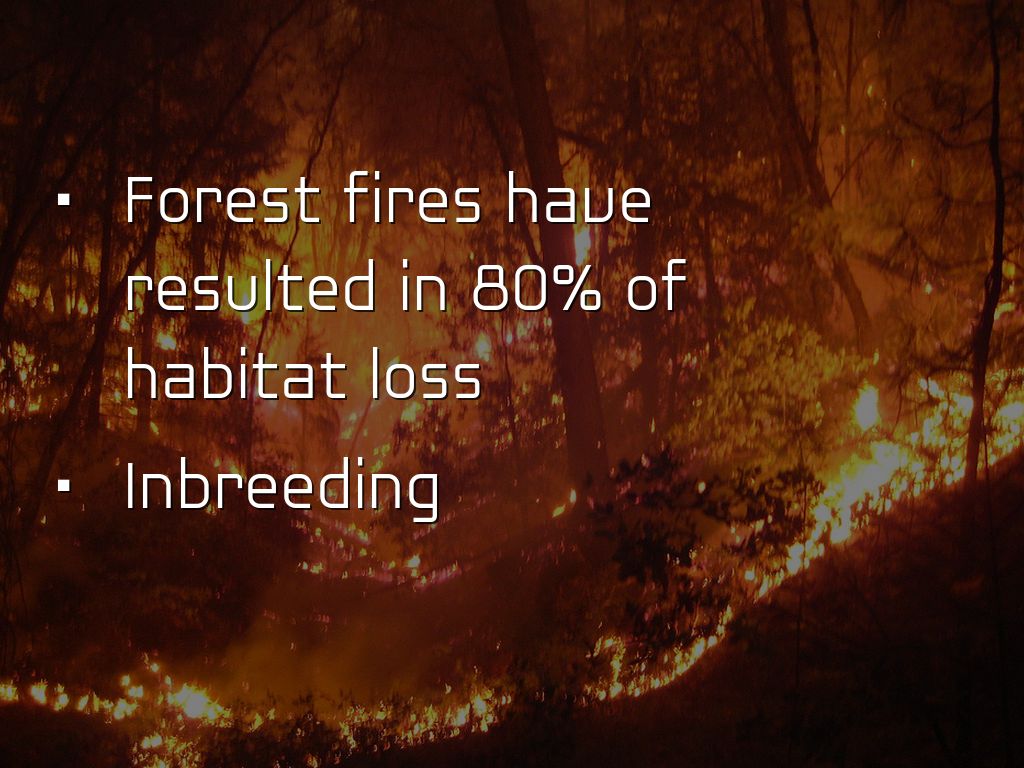 Forest fires have resulted in 80% of habitat loss