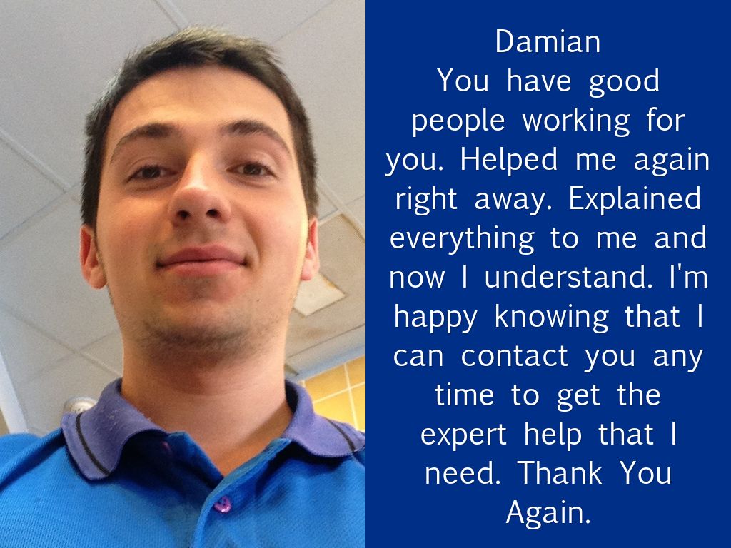 You have good people working for you. Helped me again right away. Explained everything to me and now I understand. I'm happy knowing that I can contact you any time to get the expert help that I need. Thank You Again.