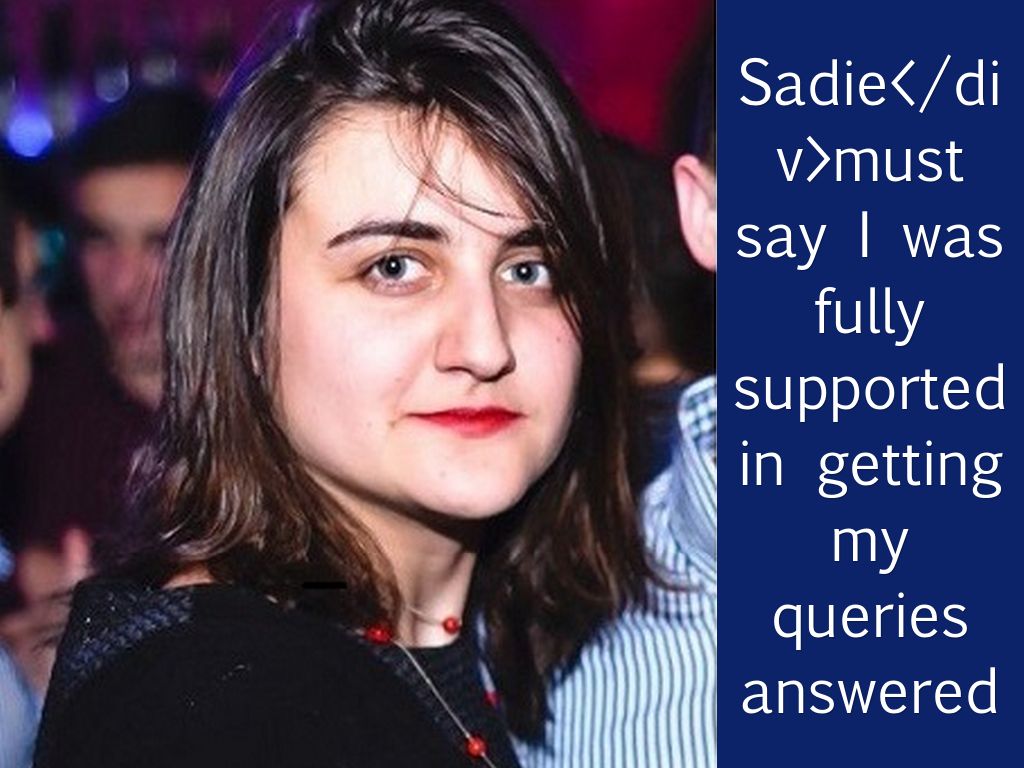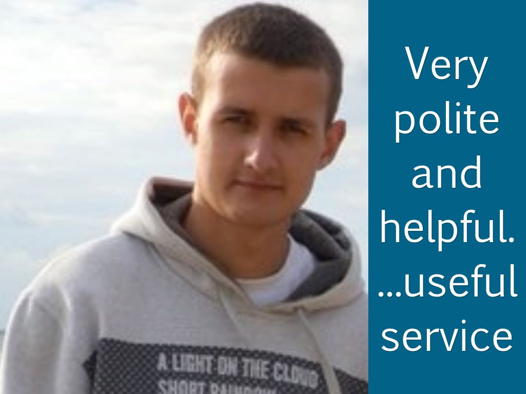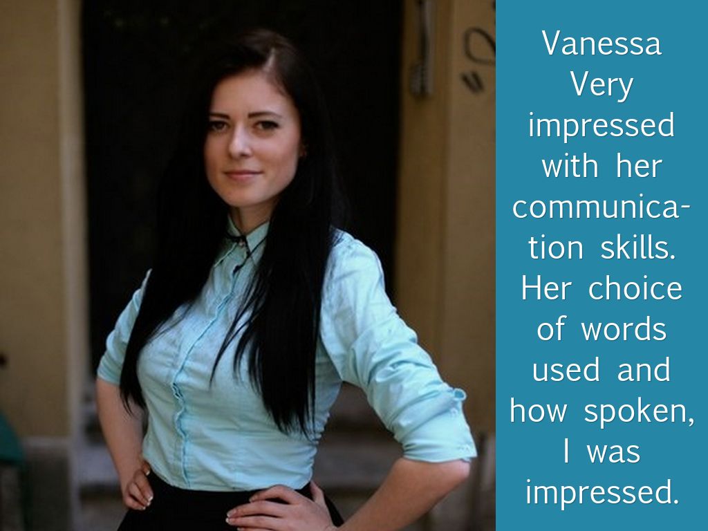 Very impressed with her communica-tion skills. Her choice of words used and how spoken, I was impressed.