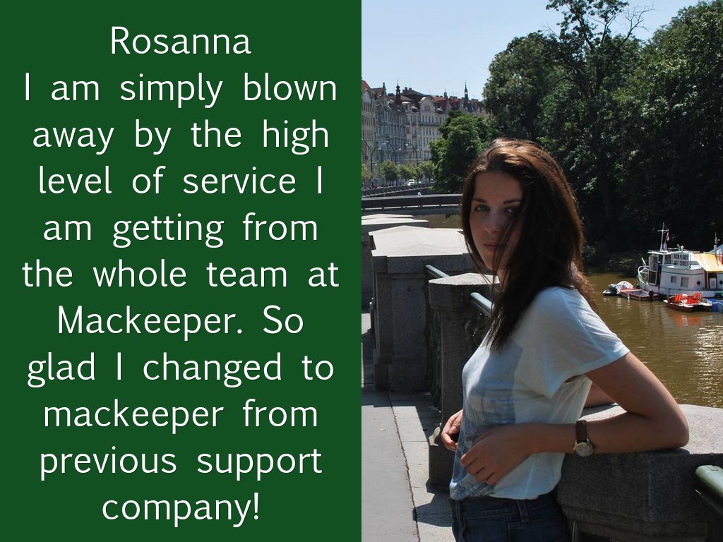 I am simply blown away by the high level of service I am getting from the whole team at Mackeeper. So glad I changed to mackeeper from previous support company!