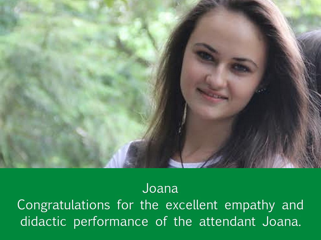 Congratulations for the excellent empathy and didactic performance of the attendant Joana.