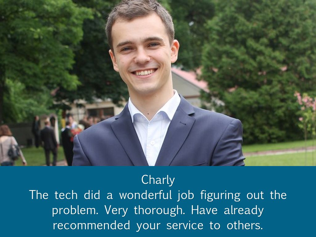 The tech did a wonderful job figuring out the problem. Very thorough. Have already recommended your service to others.