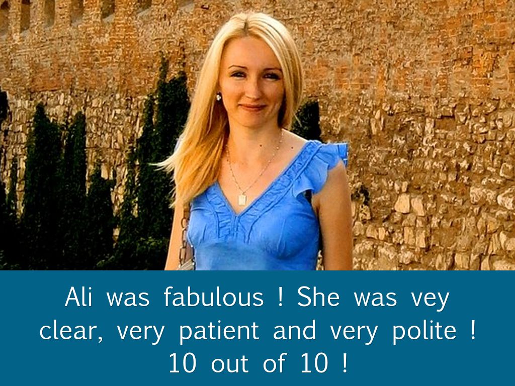 Ali was fabulous ! She was vey clear, very patient and very polite ! 10 out of 10 !