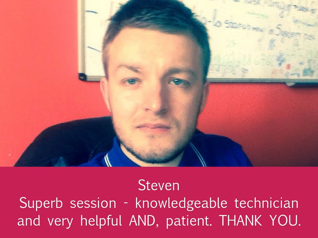 Superb session - knowledgeable technician and very helpful AND, patient. THANK YOU.