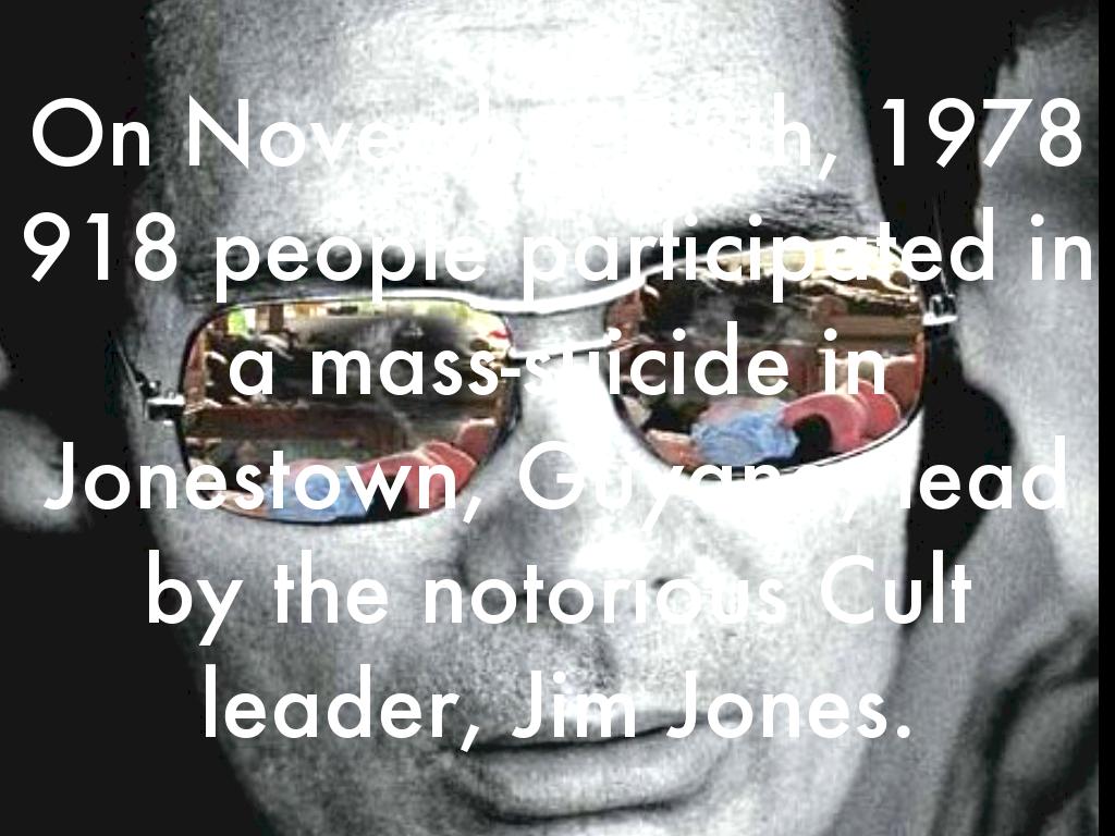On November 18th, 1978 918 people participated in a mass-suicide in Jonestown, Guyana, lead by the notorious Cult leader, Jim Jones.