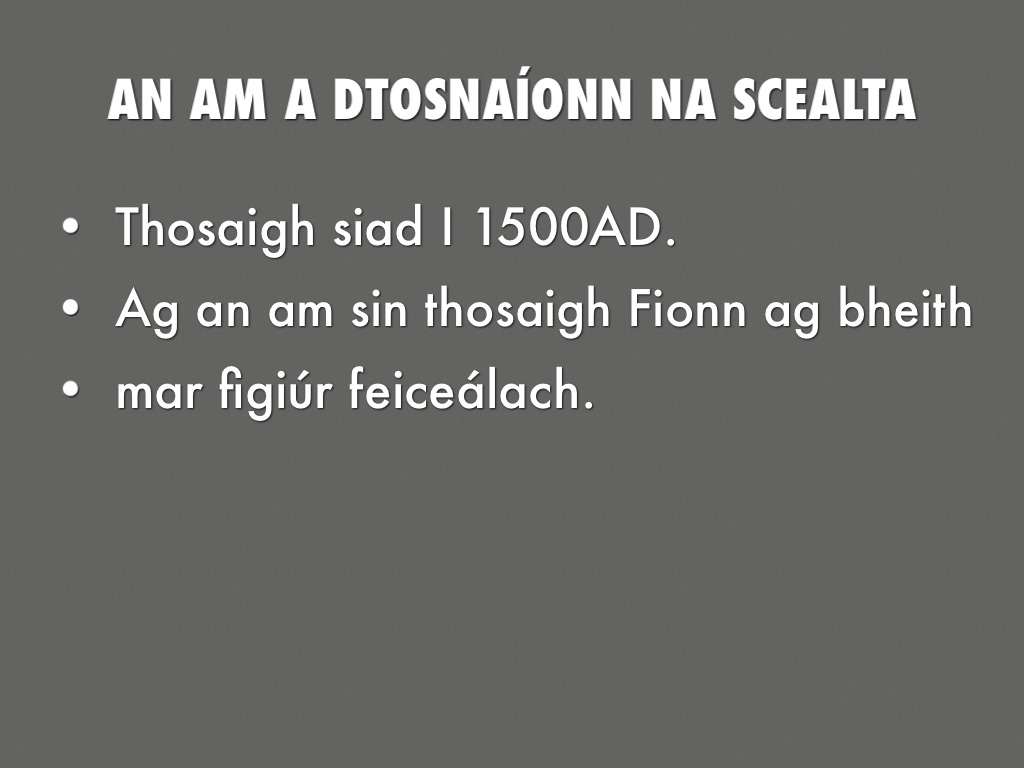 ná sna scéalta Fhiannaíocht.