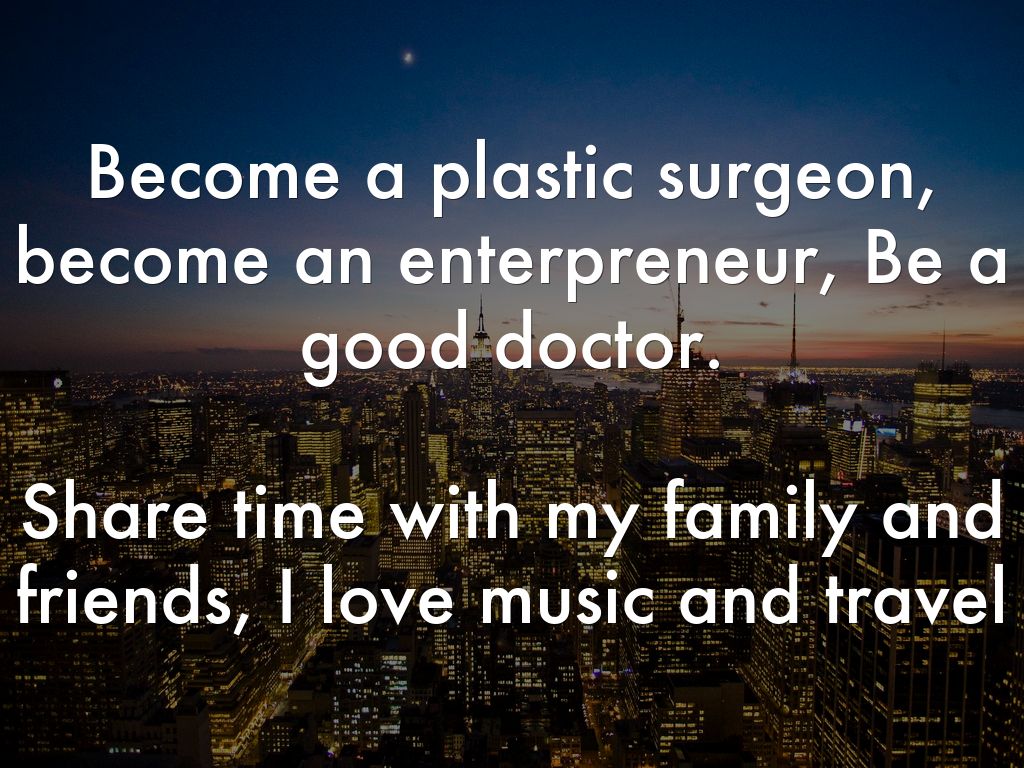 Become a plastic surgeon, become an enterpreneur, Be a good doctor.
