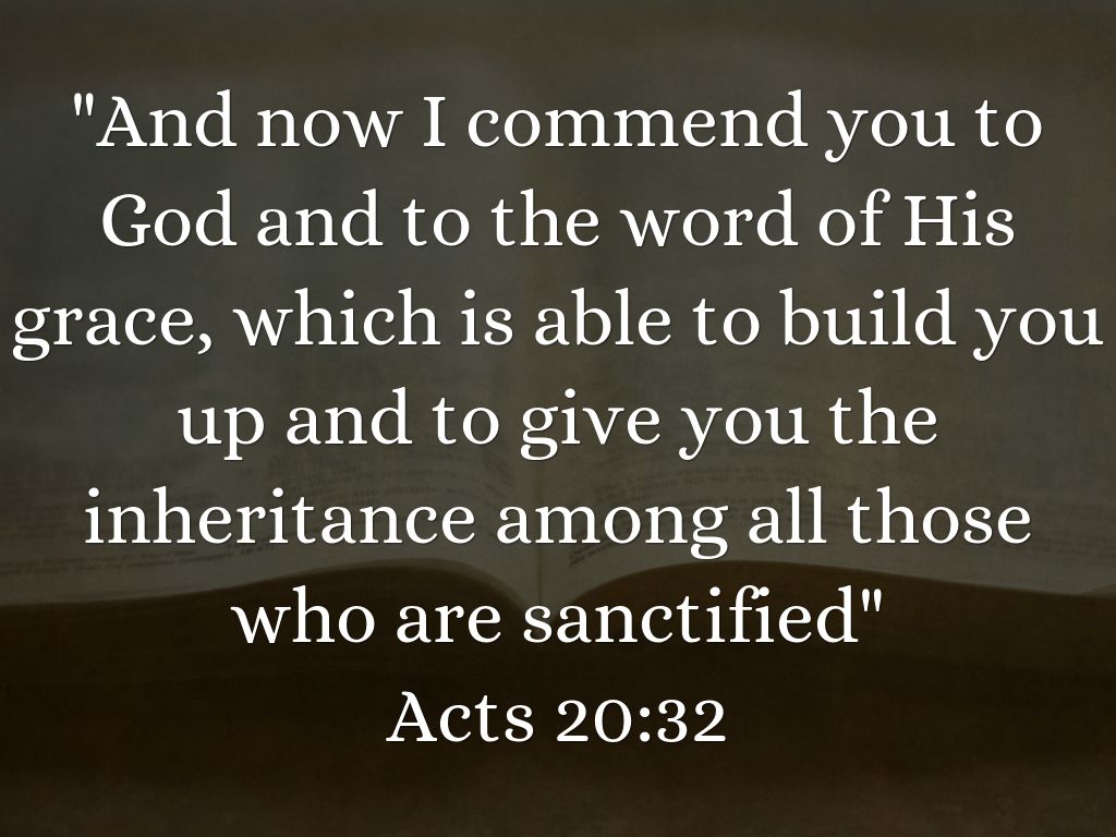 "And now I commend you to God and to the word of His grace, which is able to build you up and to give you the inheritance among all those who are sanctified"