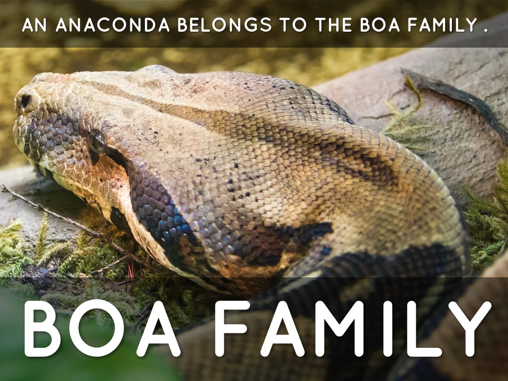 AN ANACONDA BELONGS TO THE BOA FAMILY .