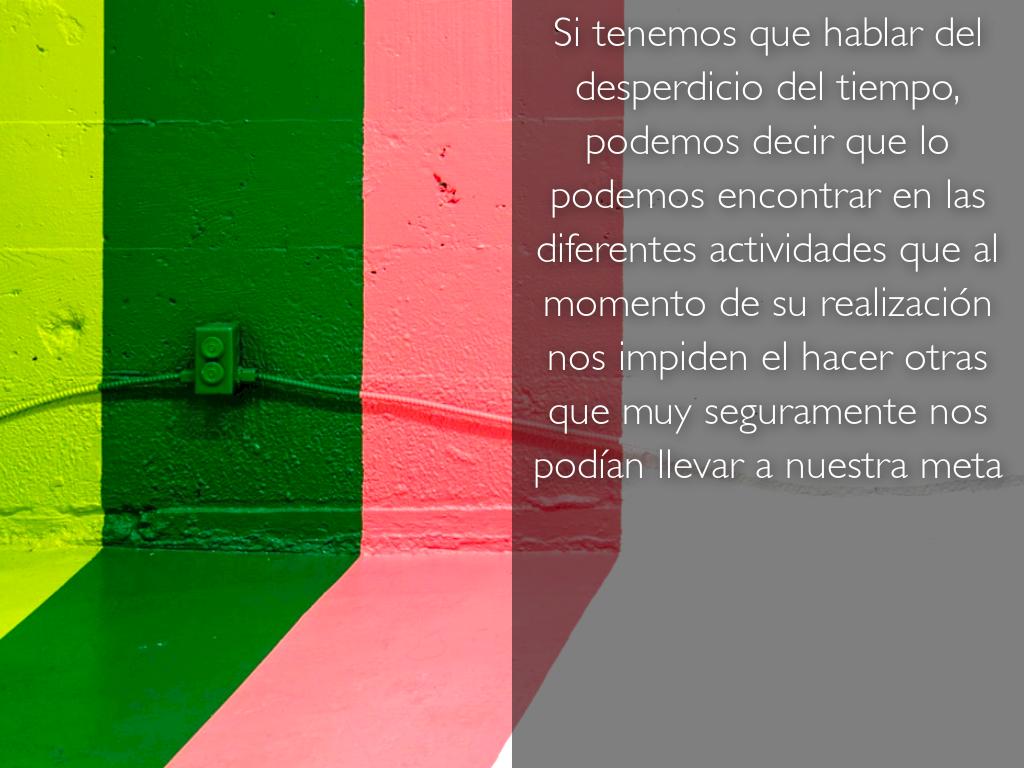 Si tenemos que hablar del desperdicio del tiempo, podemos decir que lo podemos encontrar en las diferentes actividades que al momento de su realización nos impiden el hacer otras que muy seguramente nos podían llevar a nuestra meta