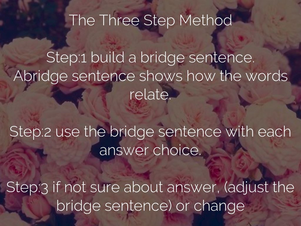 Step:3 if not sure about answer, (adjust the bridge sentence) or change