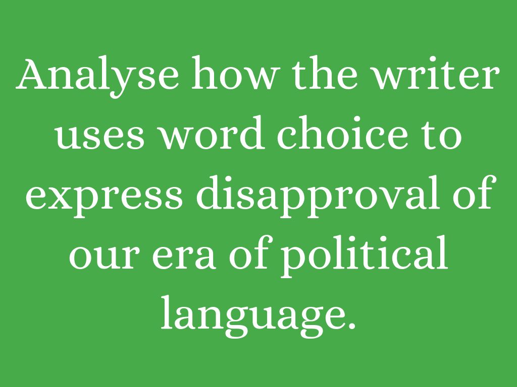 Analyse how the writer uses word choice to express disapproval of our era of political language.