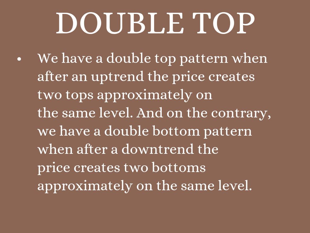 We have a double top pattern when after an uptrend the price creates two tops approximately on