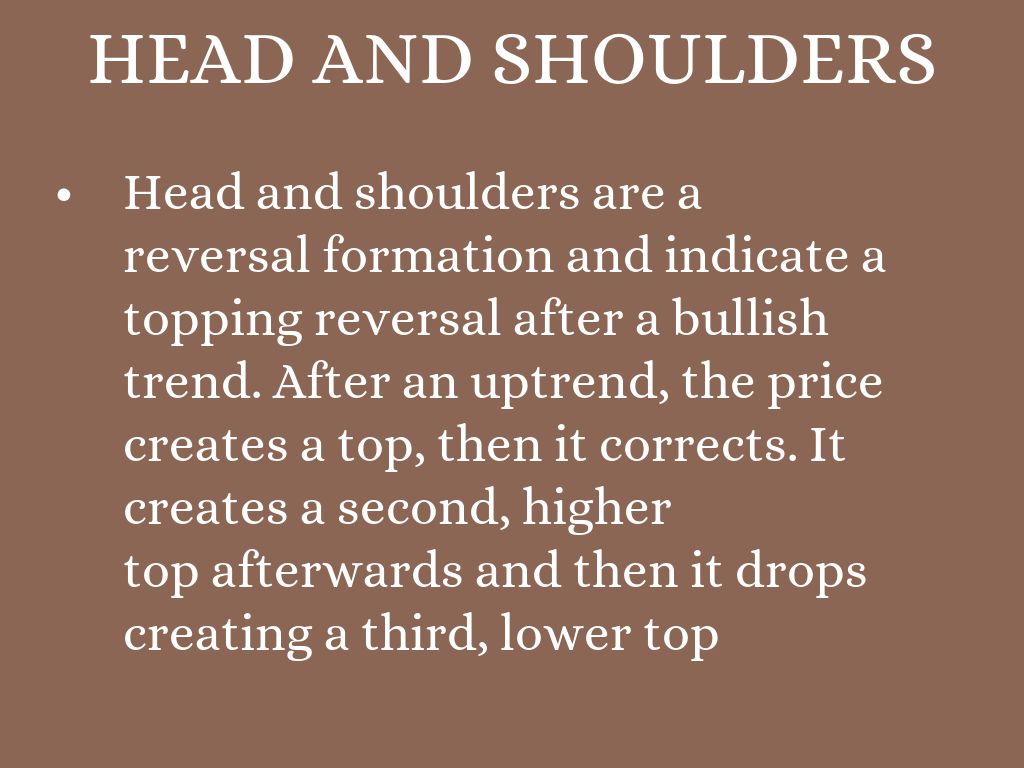 Head and shoulders are a reversal formation and indicate a topping reversal after a bullish