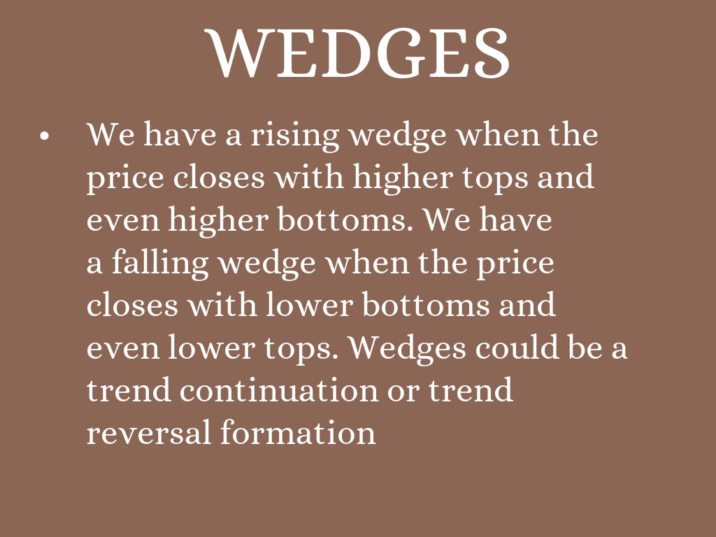 a falling wedge when the price closes with lower bottoms and even lower tops. Wedges could be a