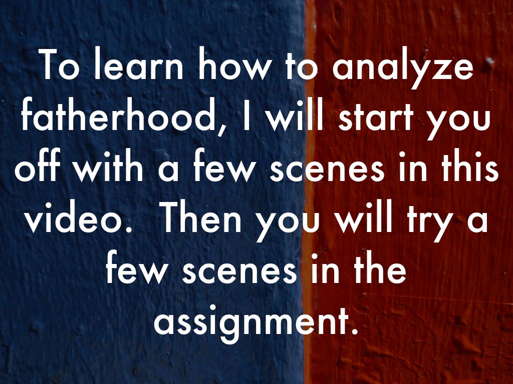 To learn how to analyze fatherhood, I will start you off with a few scenes in this video. Then you will try a few scenes in the assignment.