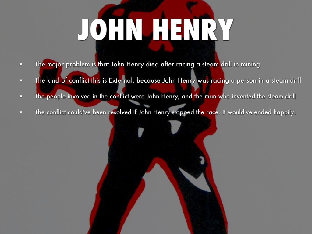 The kind of conflict this is External, because John Henry was racing a person in a steam drill