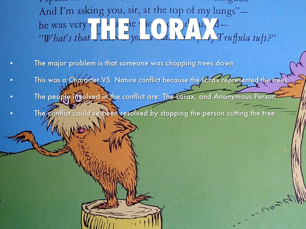 This was a Character VS. Nature conflict because the Lorax represented the trees