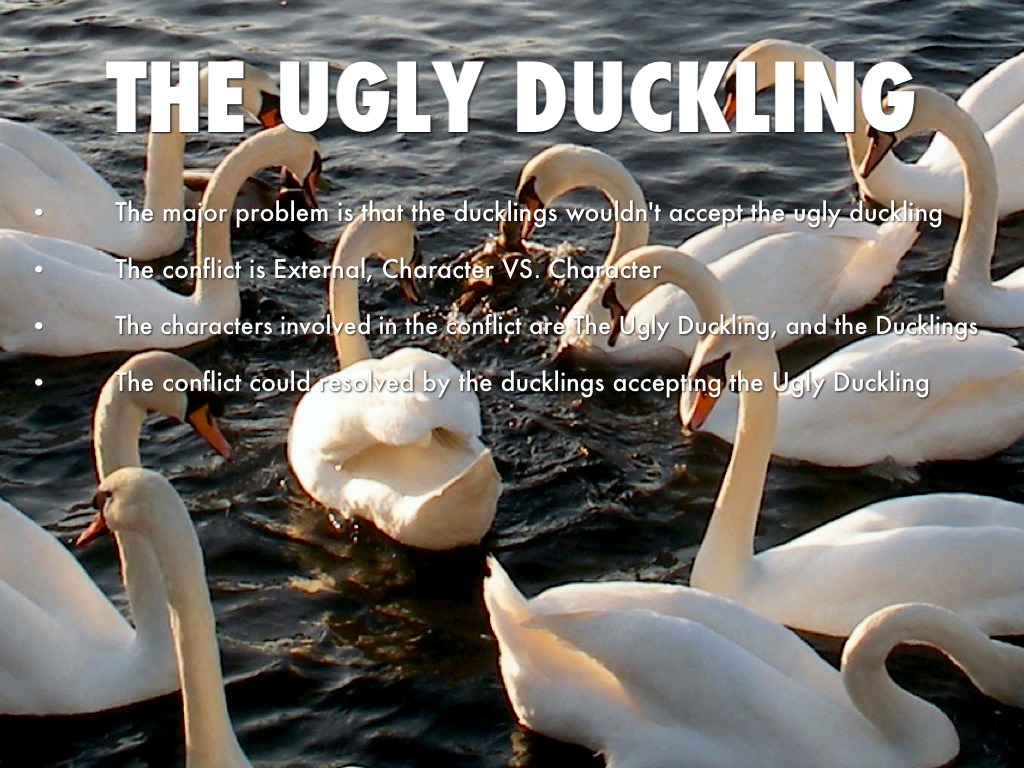 The characters involved in the conflict are The Ugly Duckling, and the Ducklings