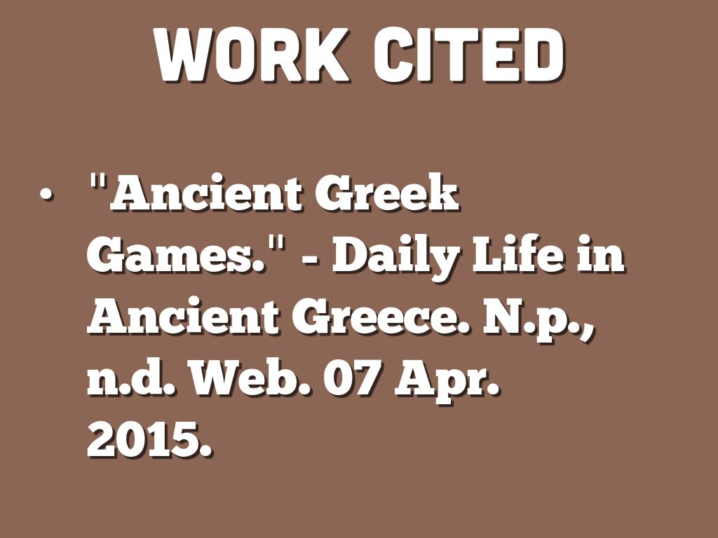 • "Ancient Greek Games." - Daily Life in Ancient Greece. N.p., n.d. Web. 07 Apr. 2015.