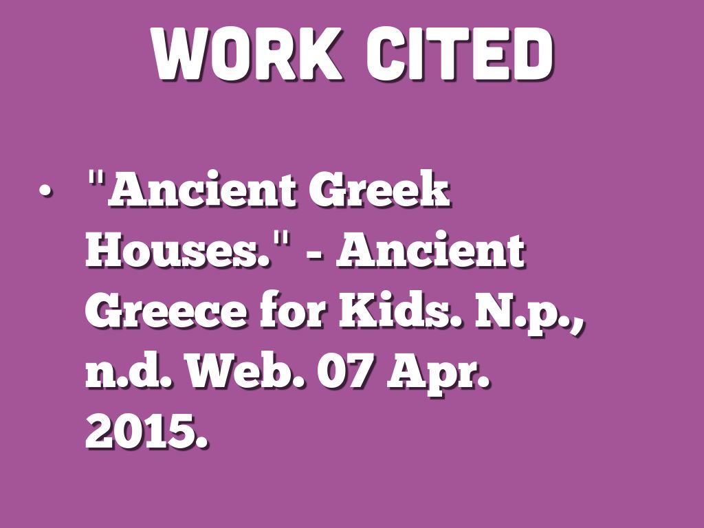 • "Ancient Greek Houses." - Ancient Greece for Kids. N.p., n.d. Web. 07 Apr. 2015.
