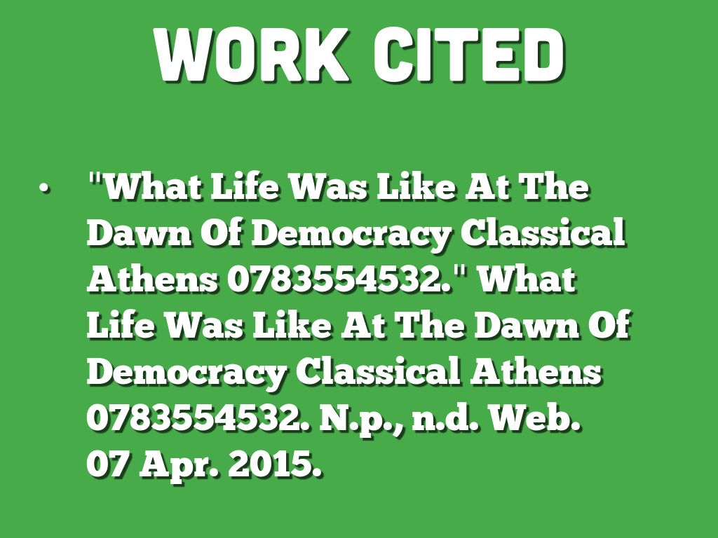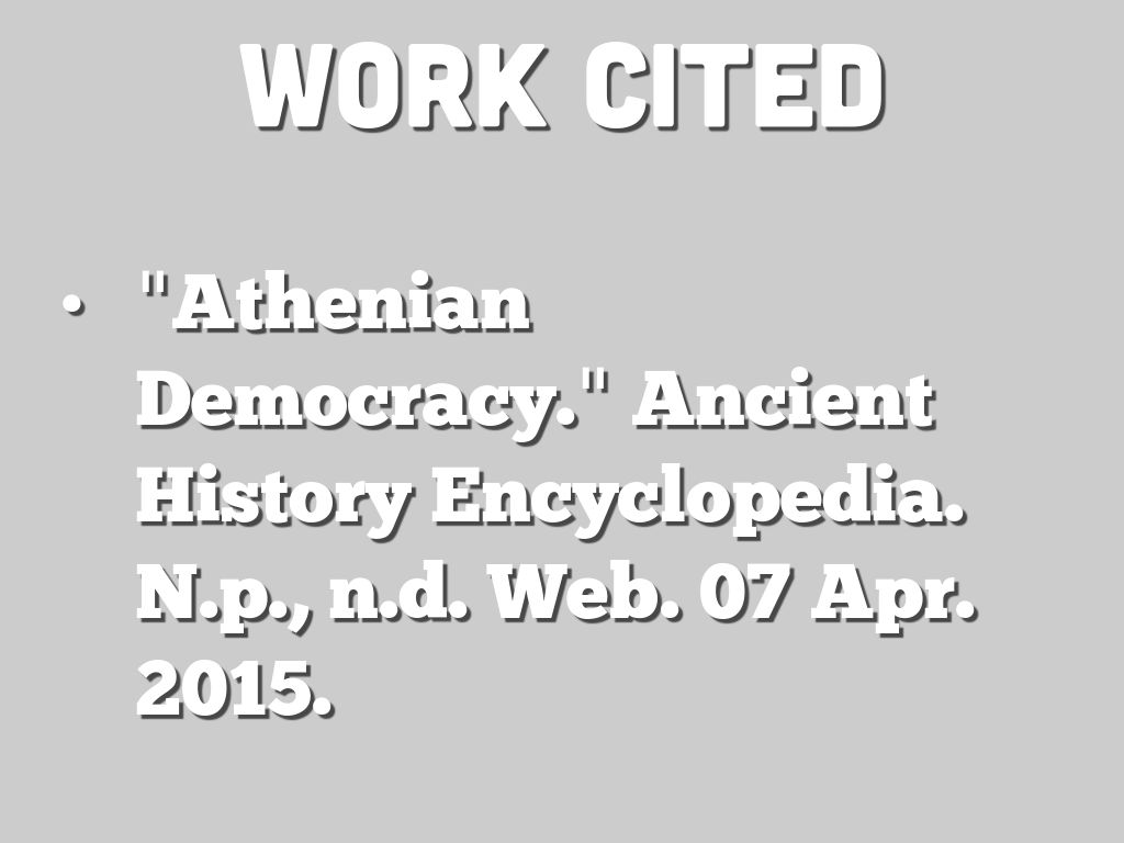 • "Athenian Democracy." Ancient History Encyclopedia. N.p., n.d. Web. 07 Apr. 2015.