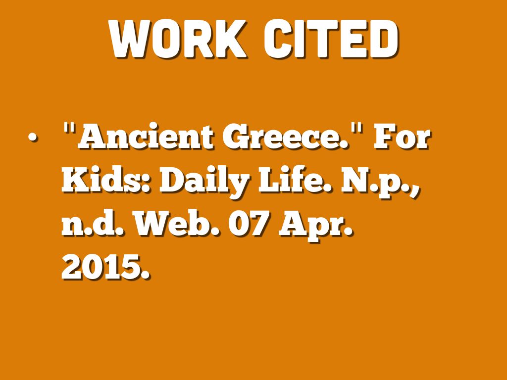 • "Ancient Greece." For Kids: Daily Life. N.p., n.d. Web. 07 Apr. 2015.