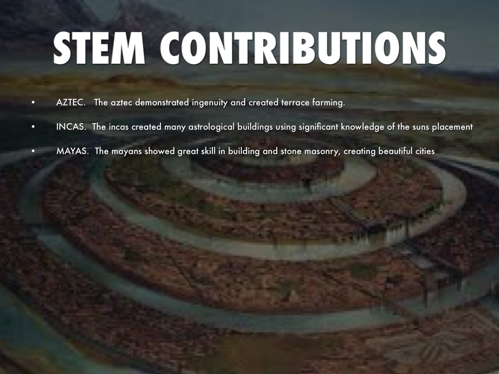 AZTEC. The aztec demonstrated ingenuity and created terrace farming.