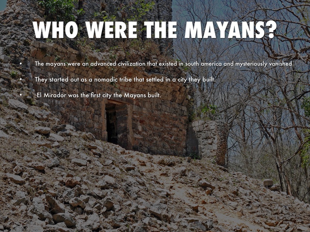 The mayans were an advanced civilization that existed in south america and mysteriously vanished