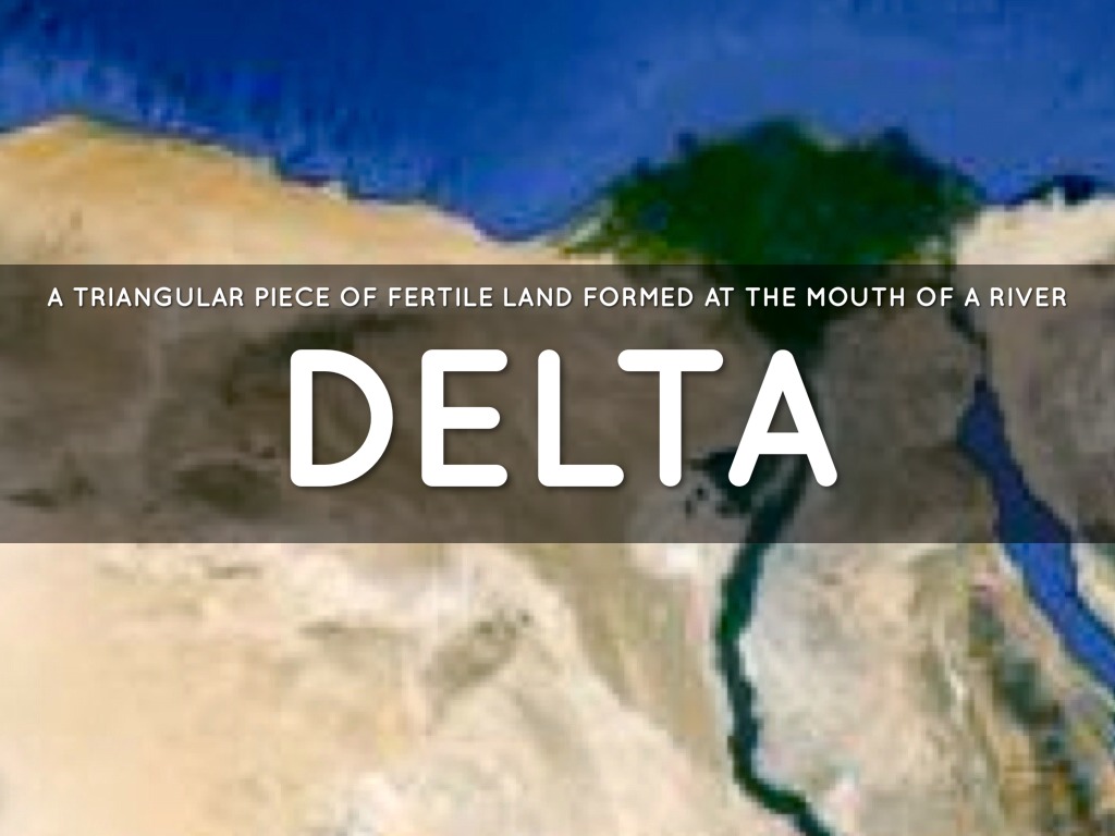 A TRIANGULAR PIECE OF FERTILE LAND FORMED AT THE MOUTH OF A RIVER