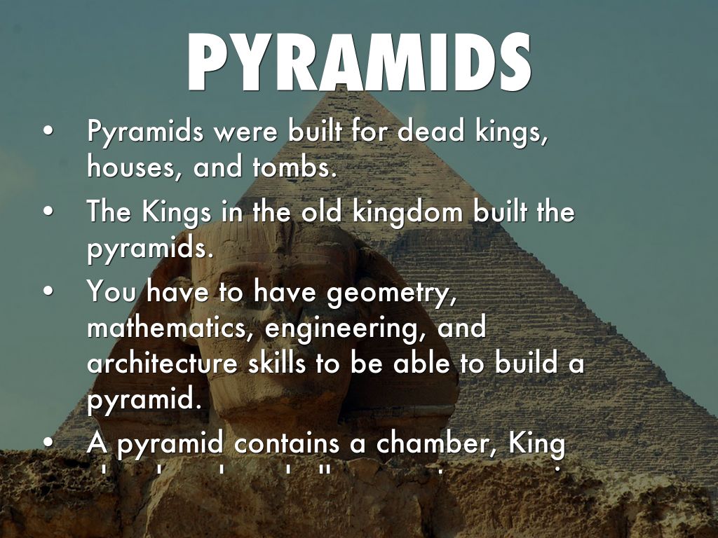 You have to have geometry, mathematics, engineering, and architecture skills to be able to build a pyramid.