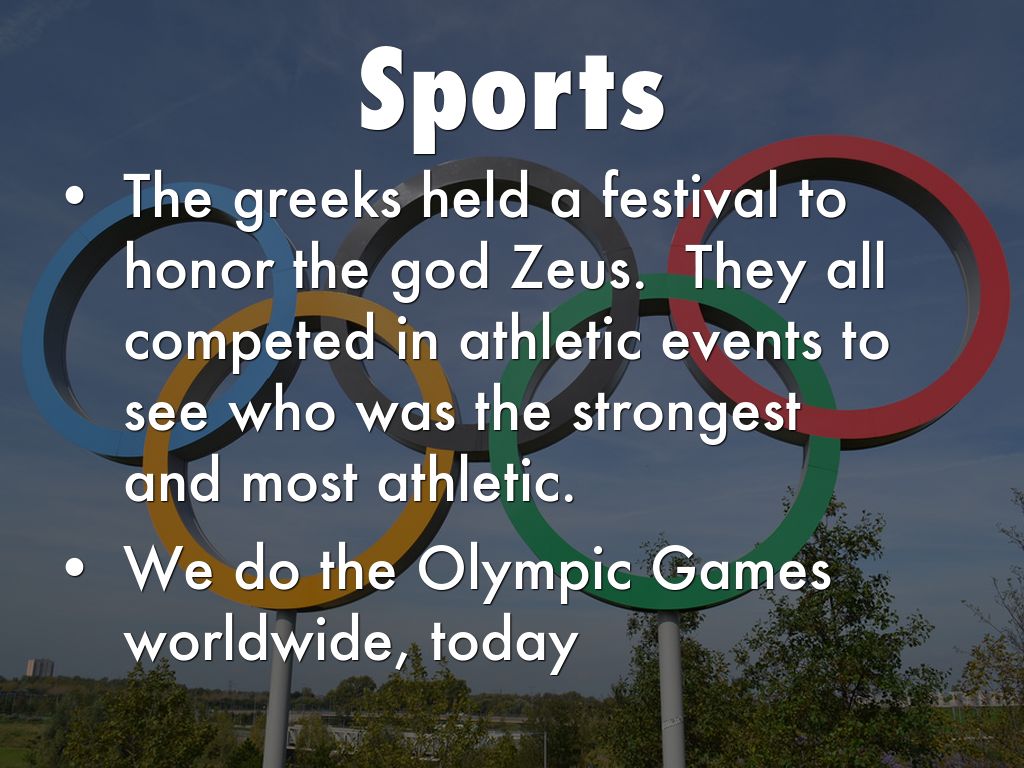 • The greeks held a festival to honor the god Zeus. They all competed in athletic events to see who was the strongest and most athletic.
