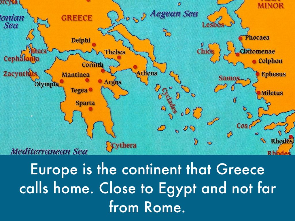 Europe is the continent that Greece calls home. Close to Egypt and not far from Rome.