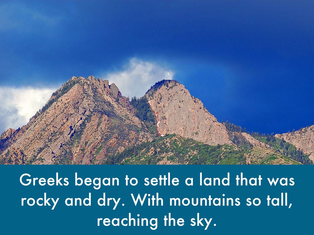 Greeks began to settle a land that was rocky and dry. With mountains so tall, reaching the sky.