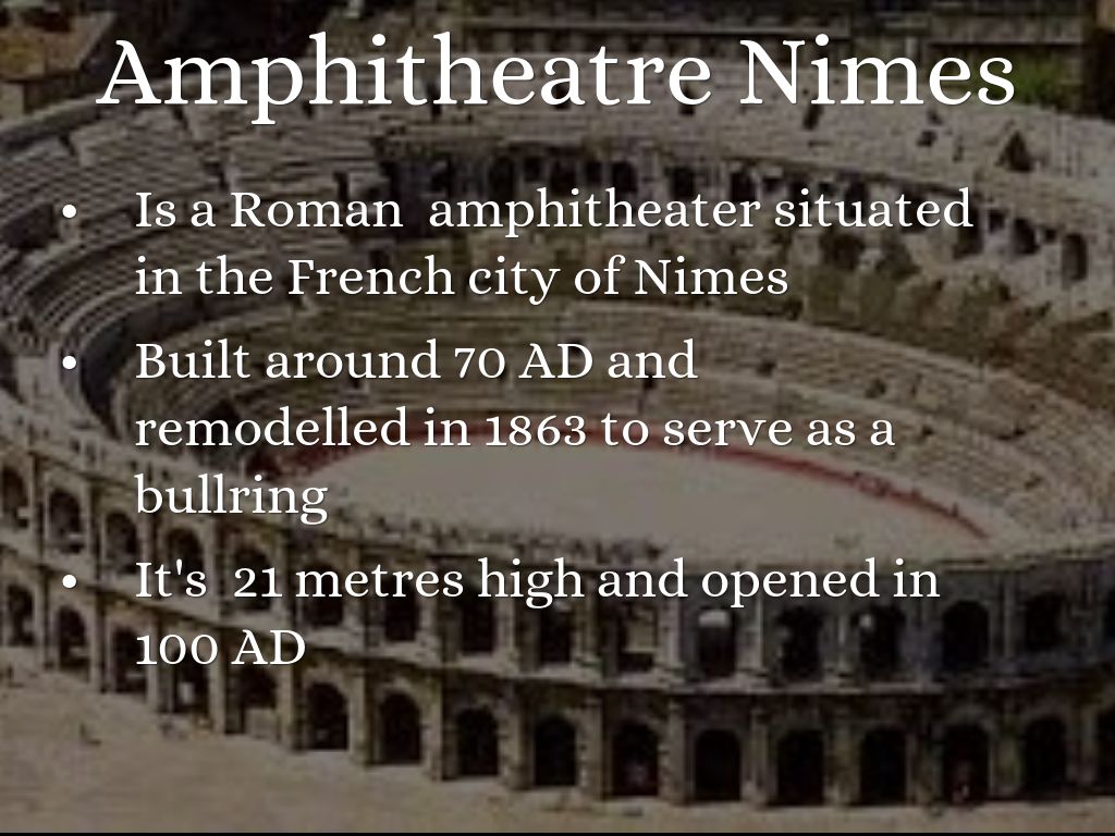 Built around 70 AD and remodelled in 1863 to serve as a bullring
