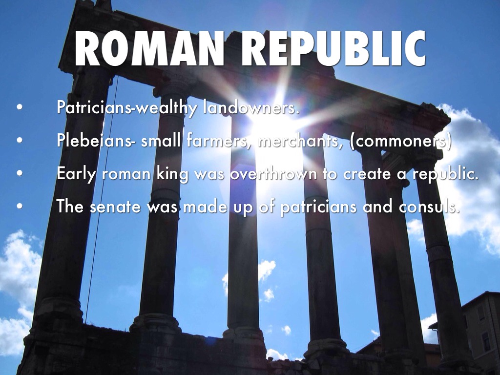 • Early roman king was overthrown to create a republic.