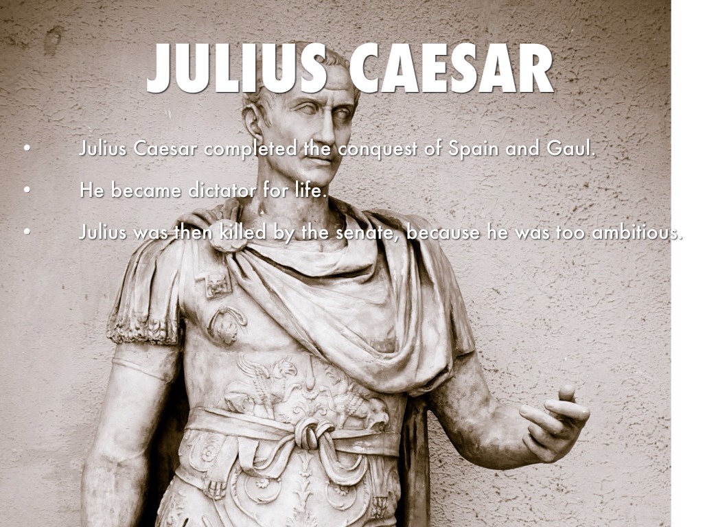 • Julius was then killed by the senate, because he was too ambitious.