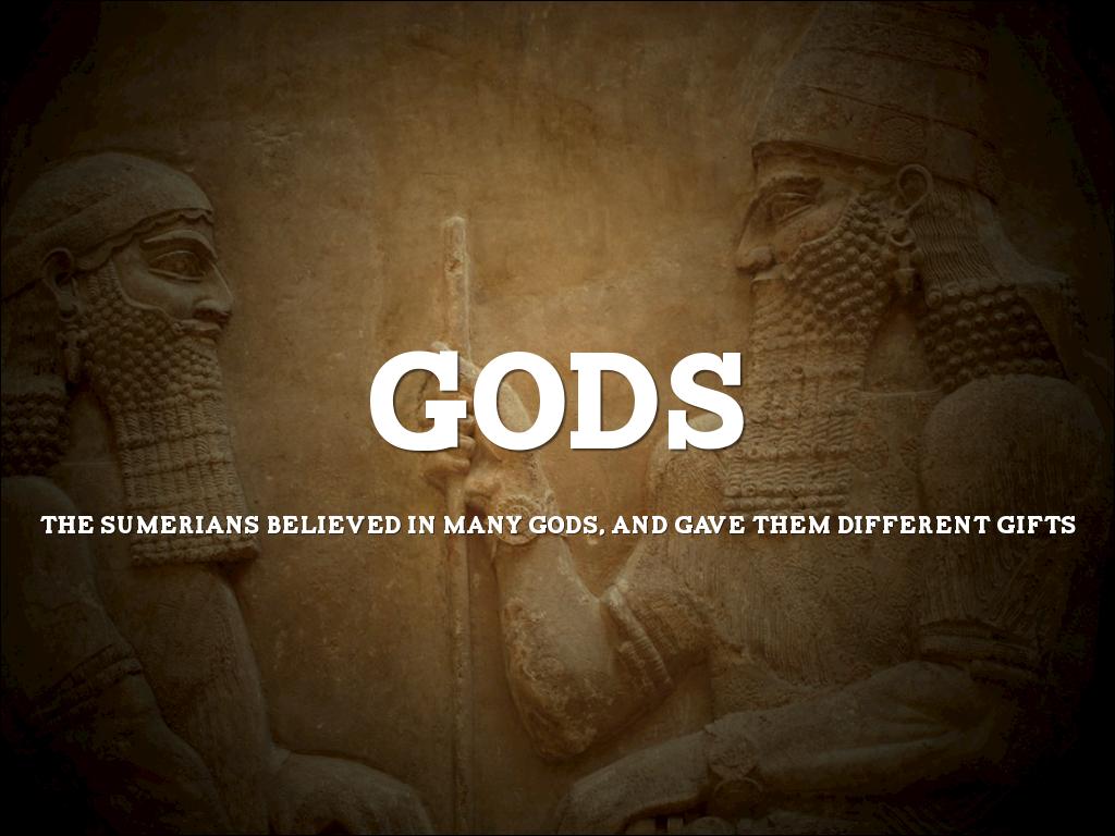 THE SUMERIANS BELIEVED IN MANY GODS, AND GAVE THEM DIFFERENT GIFTS