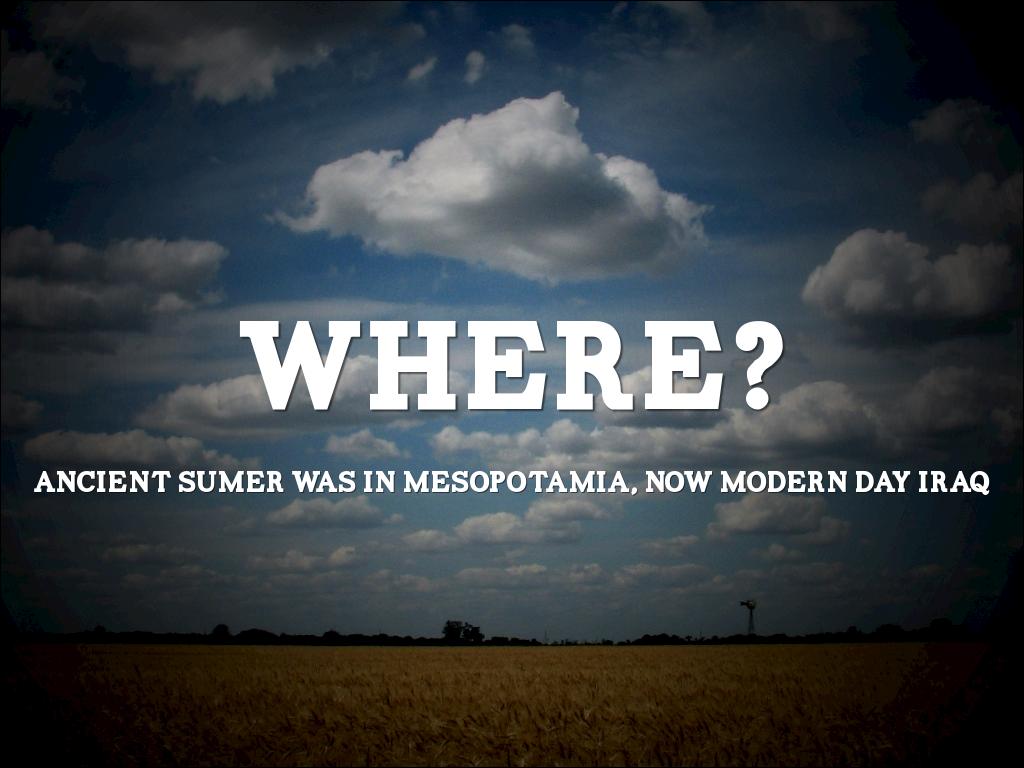 ANCIENT SUMER WAS IN MESOPOTAMIA, NOW MODERN DAY IRAQ