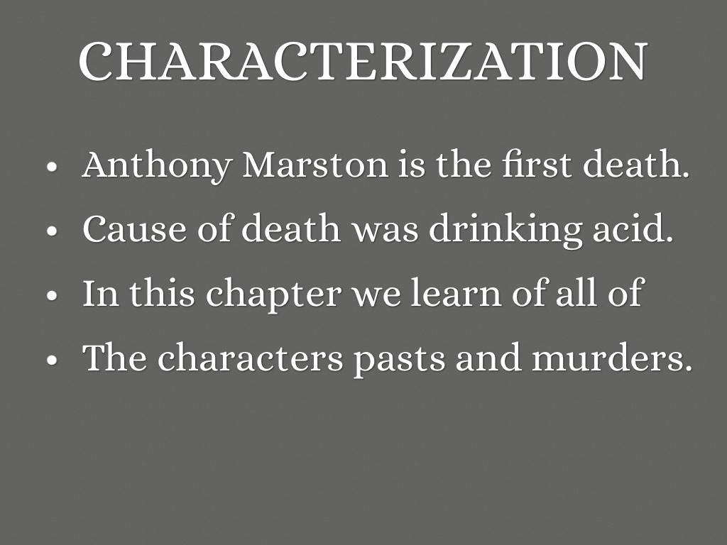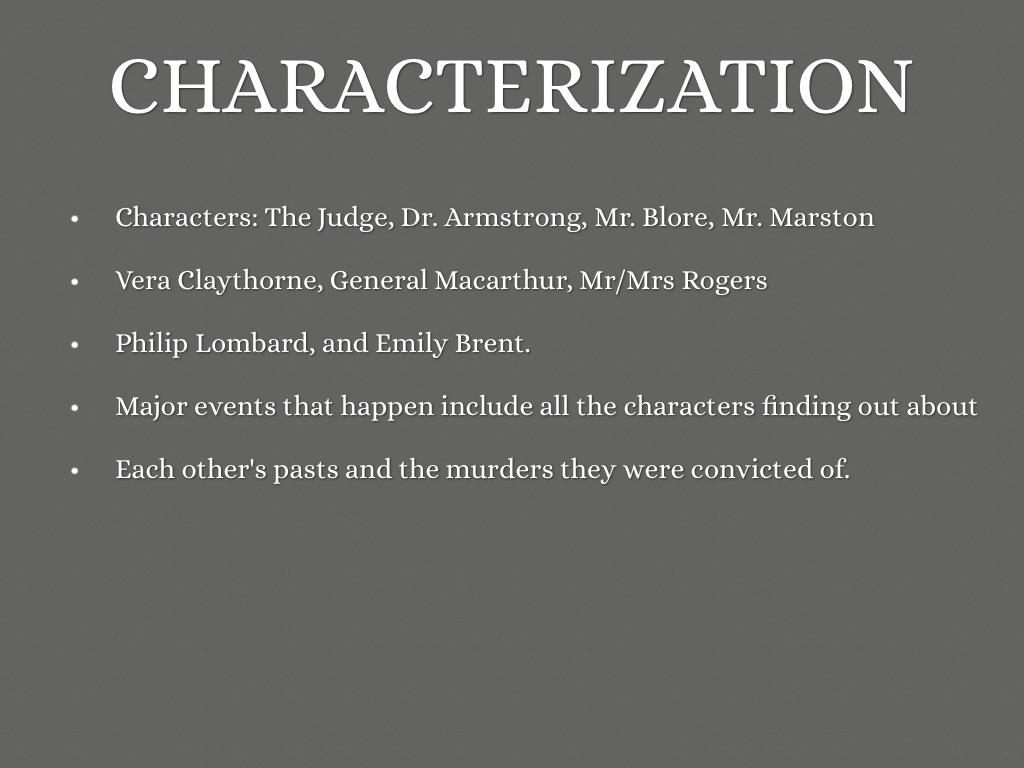 Characters: The Judge, Dr. Armstrong, Mr. Blore, Mr. Marston