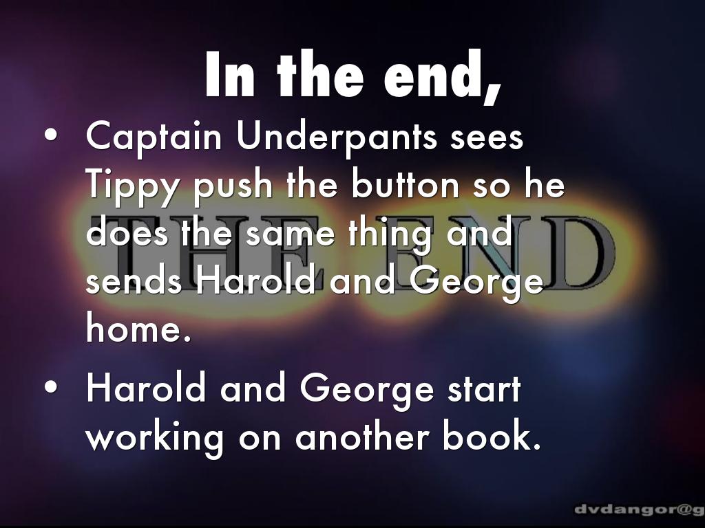 Captain Underpants sees Tippy push the button so he does the same thing and sends Harold and George home.