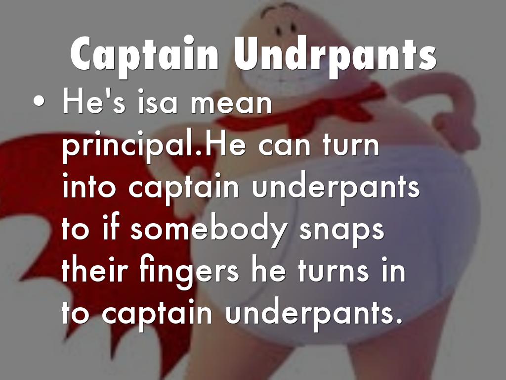 He's isa mean principal.He can turn into captain underpants to if somebody snaps their fingers he turns in to captain underpants.